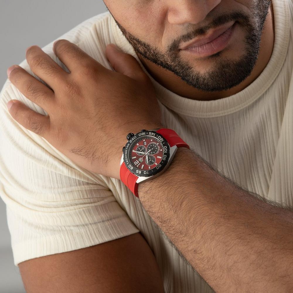 Embrace an energetic and thrilling sense of style with the unmissable TAG Heuer Formula 1 Red Chronograph Quartz Men’s Watch. Crafted in a striking red hue, this timepiece is tailored for individuals with a fervor for adventure and victory.